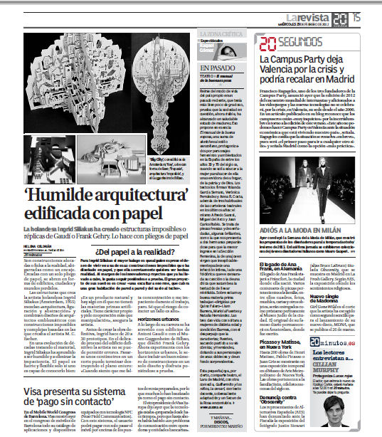 5 maart 2012Artikel in het Spaanse magazine '20 minutes'/article included in the Spanish magazine '20 minutes':