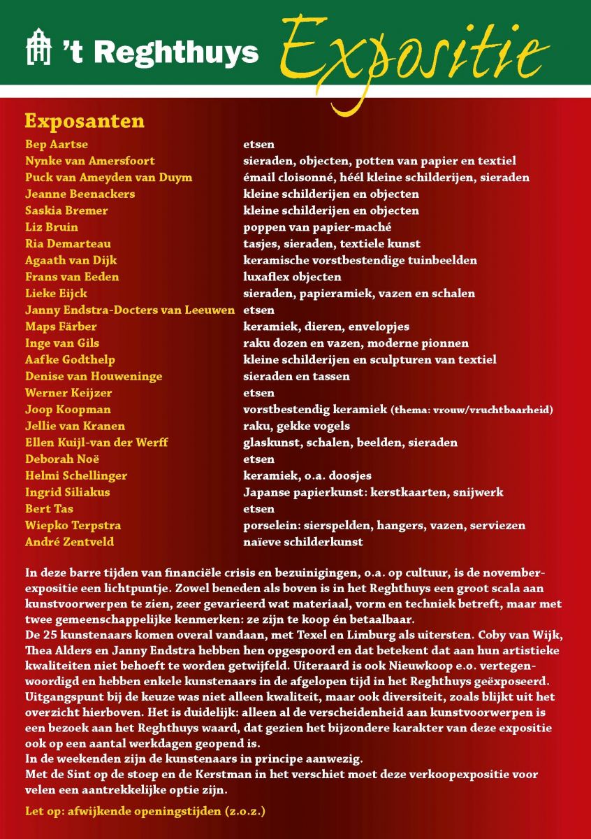 21 november 2011Overzicht van de werken te koop bij 't Reghthuys (nog tot zondag 27 november, ma/di gesloten):