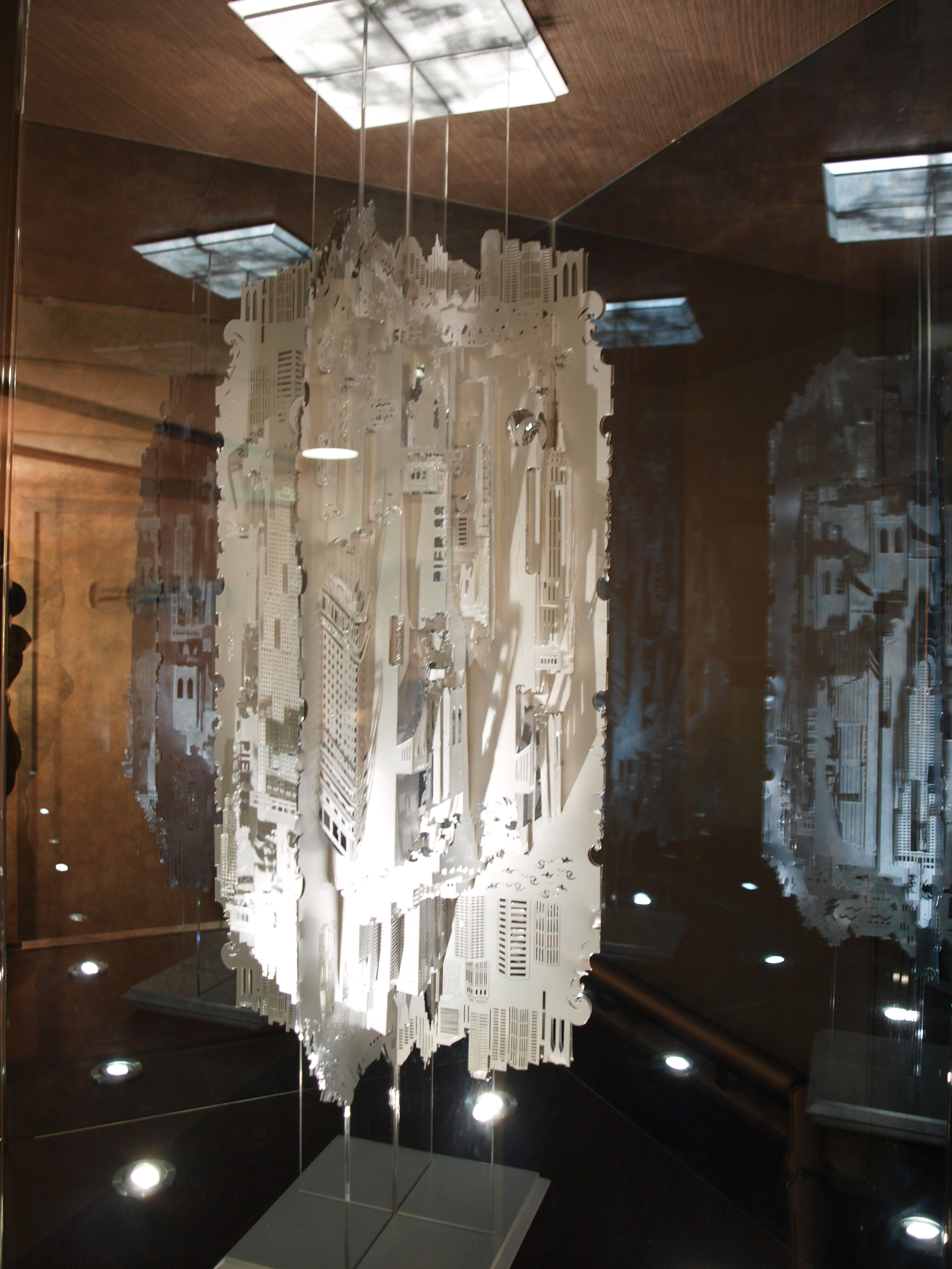 Een impressie van de werken zoals deze geplaatst zijn op de boot van de Holland Amerika Lijn, namelijk op de "Nieuw Amsterdam". De foto's zijn niet erg scherp en donker en geeft dus slechts een indruk.